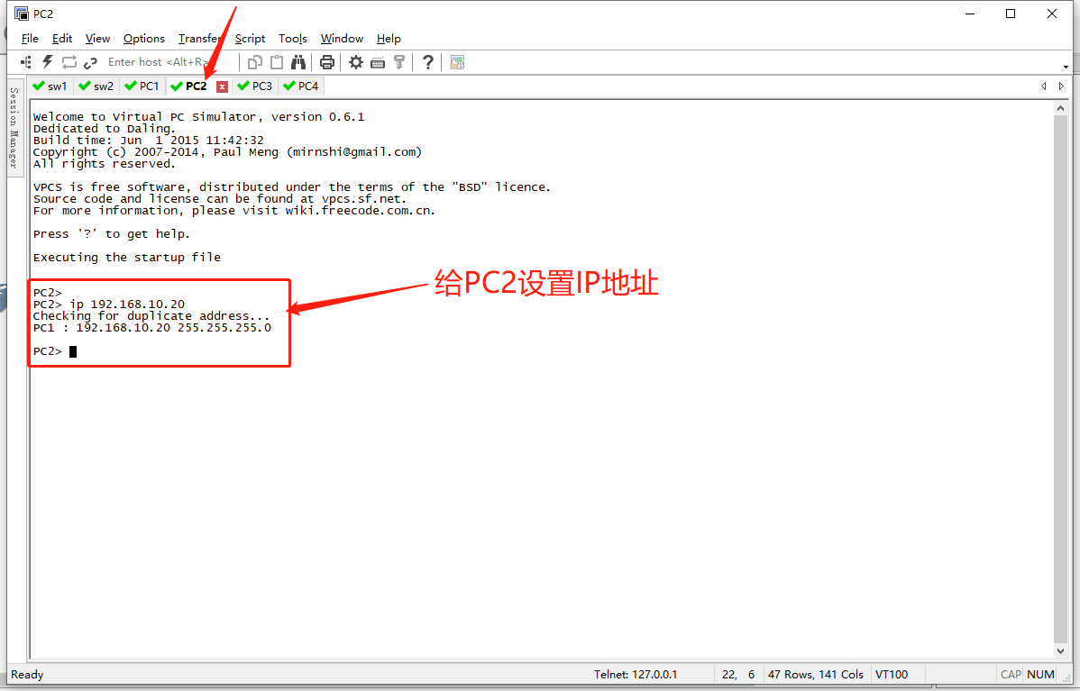 11.给PC2设置IP地址设置IP地址:ip 192.168.10.20