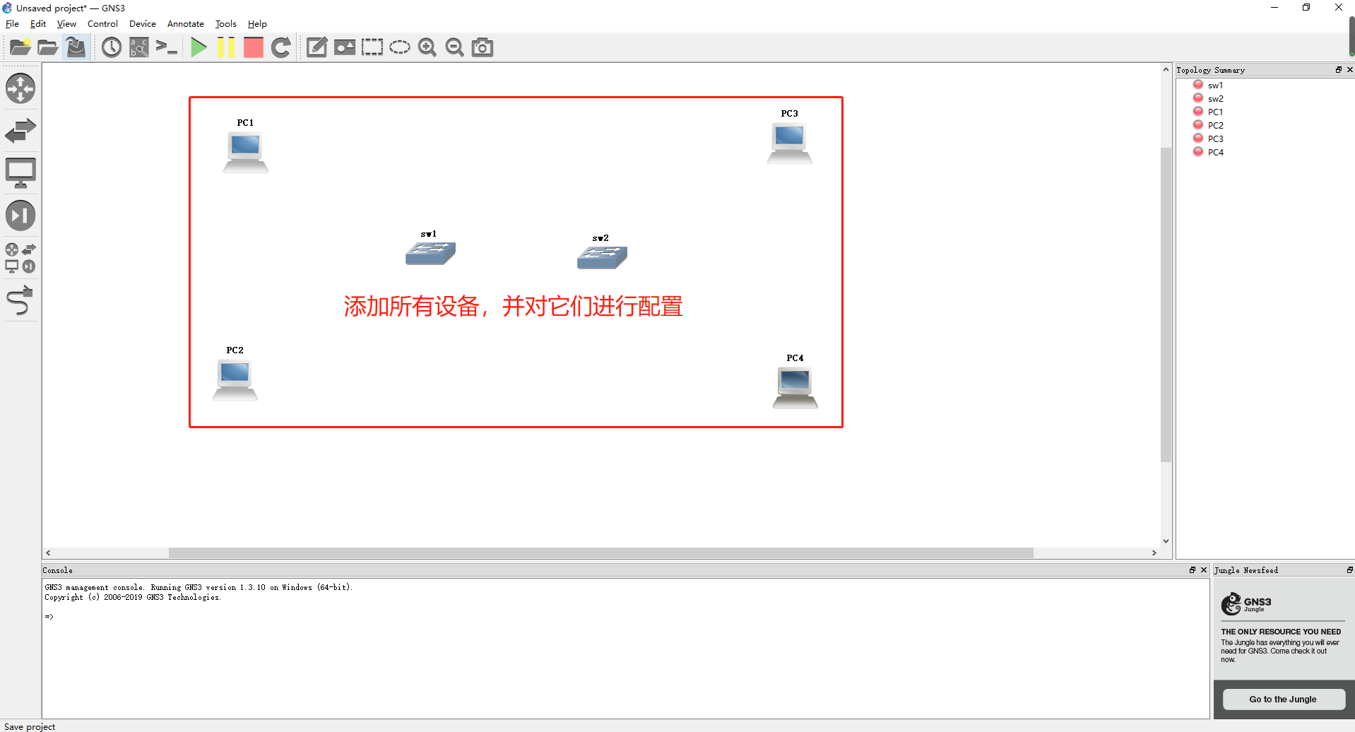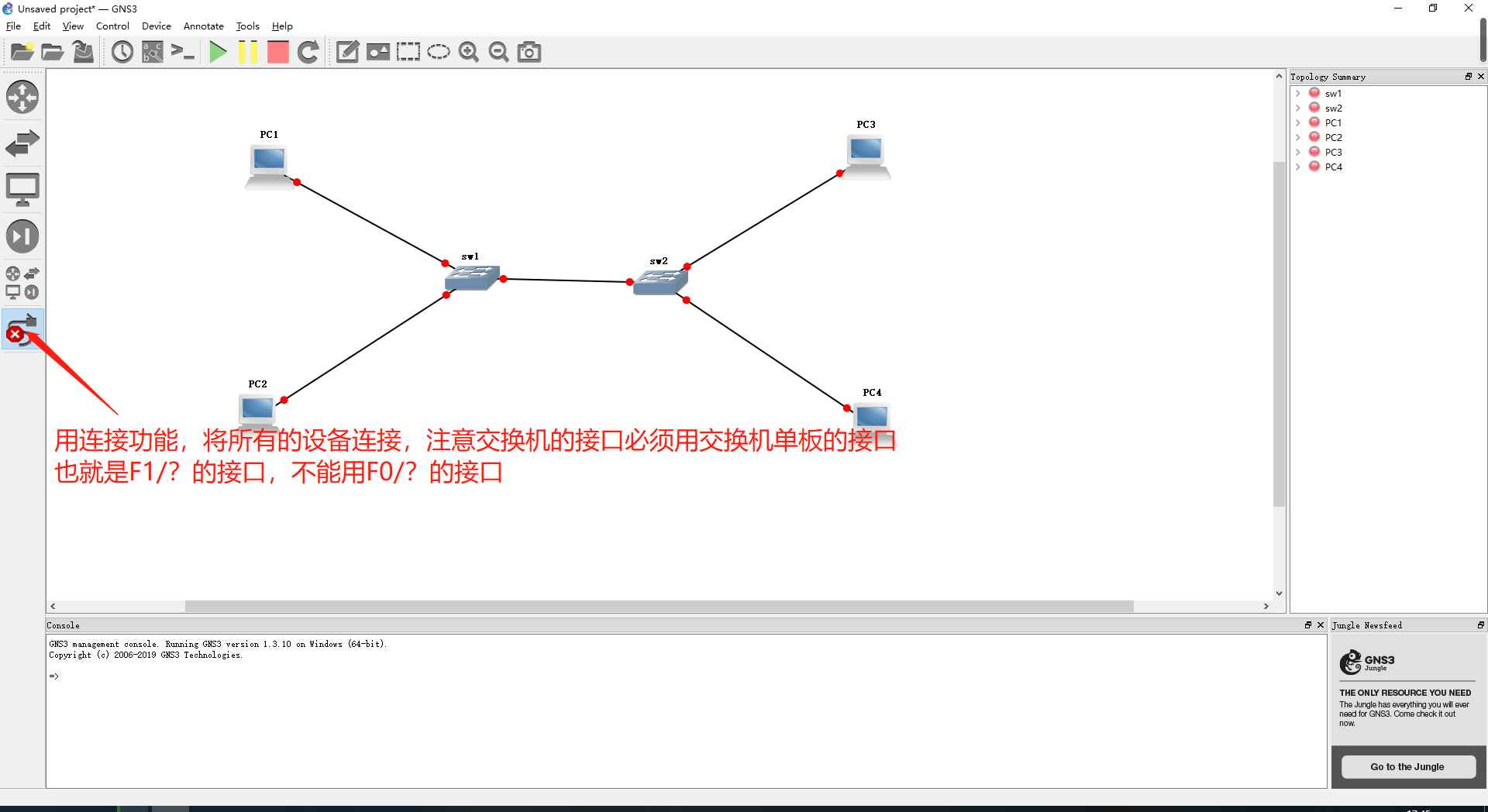 2.使用连接功能,将各个设备连接起来,连接时需要注意接口