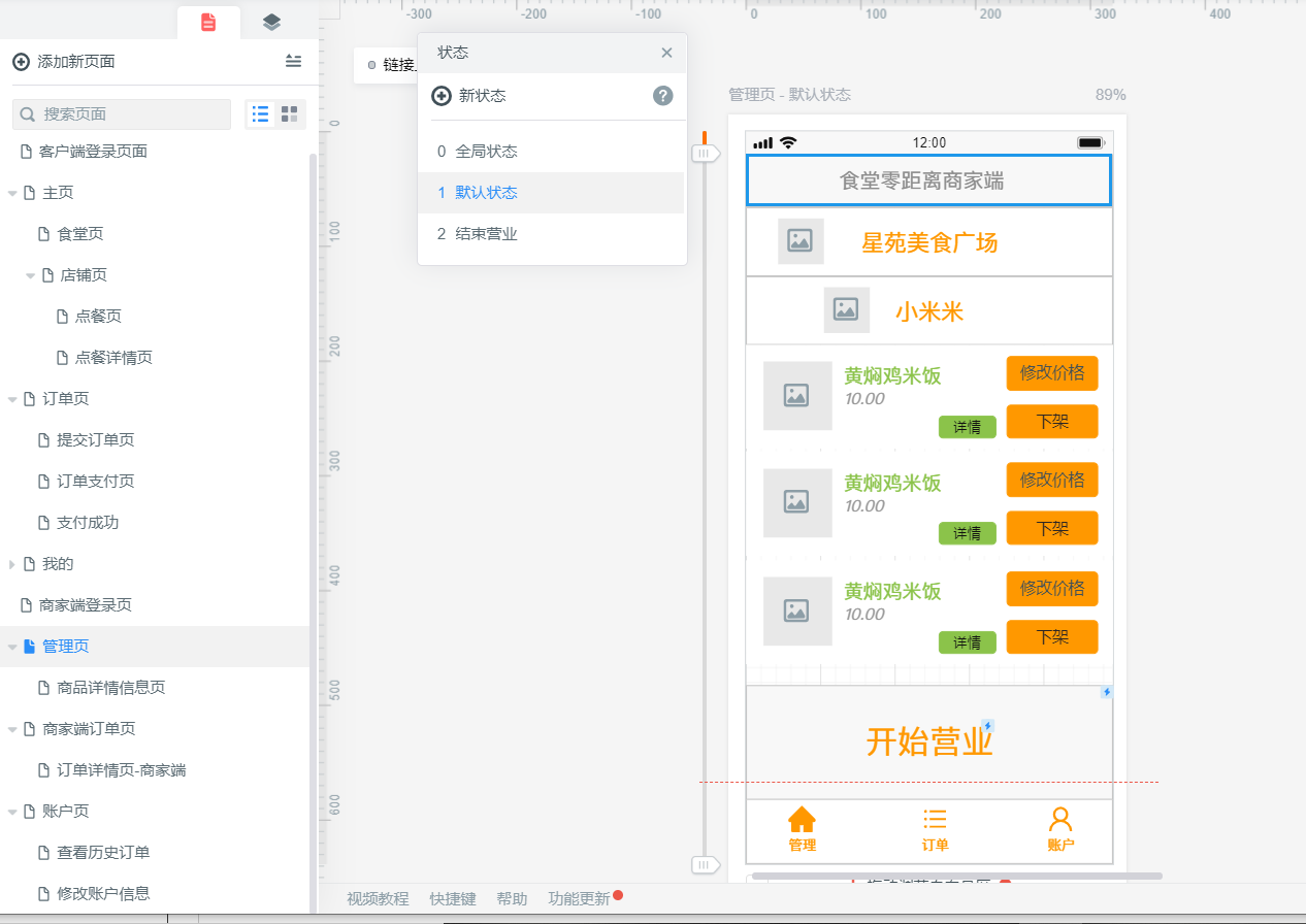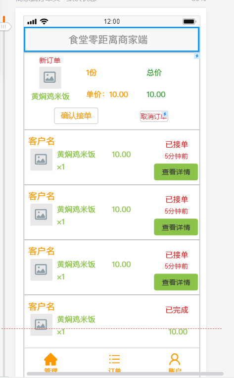 今天做好了商家端的原型设计,完善了客户端的原型,进行了展示。