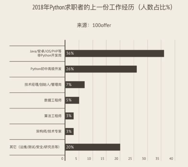 从求职者的以往工作背景来看,“单一”的Python程序员并不算多,大多数人拥有复合背景。