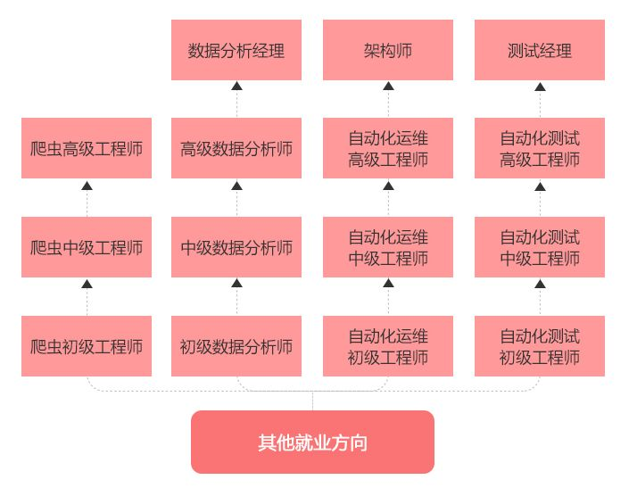 Python语言本身所具有的优势,决定了从事Python学习的开发工程师相较于其他编程语言,拥有更多岗位发展选择。