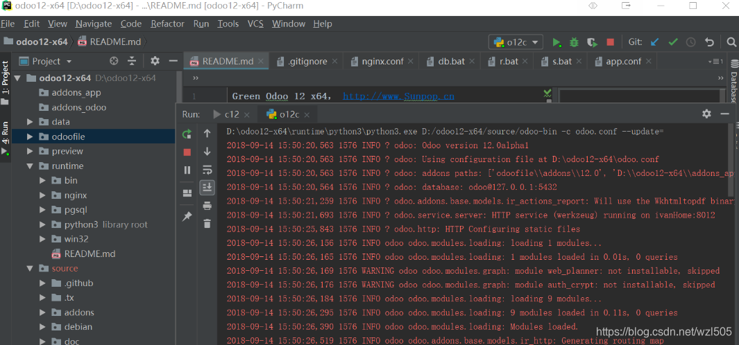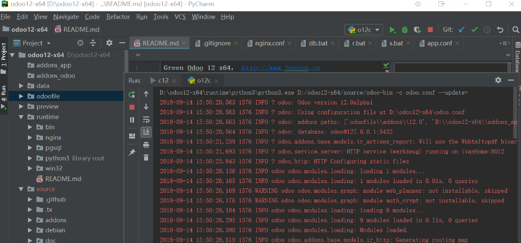 为了方便,可以先下载我们制作的 odoo12-x64 的64位绿色版本,在 window 下一键启动,也做了很多配置,让你快速进入odoo12的开发。