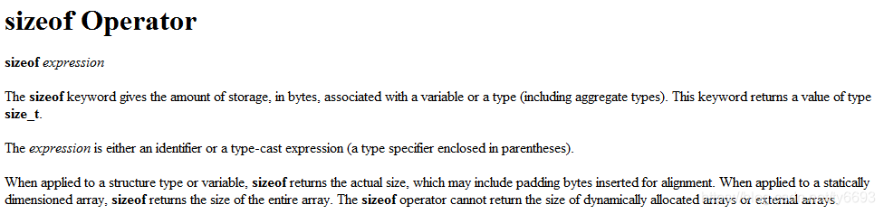 首先我们需要知道的是,sizeof既是一个单目操作符,也是一个关键字,其作用是求操作数的类型长度(以字节为单位)。