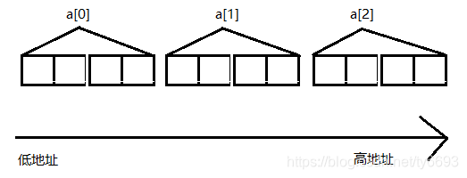 那么我们可以将a[0]当成 第一行元素的数组名,a[1]作为第二行元素的数组名,同理,a[2]就是第三行元素的数组名。