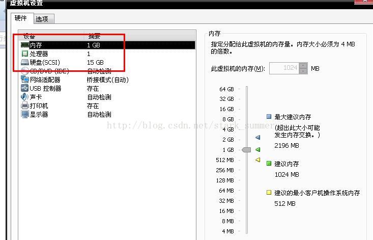 内存:1G,cpu:一个core,硬盘:15G