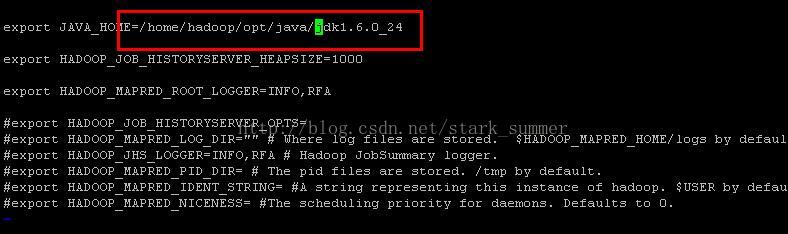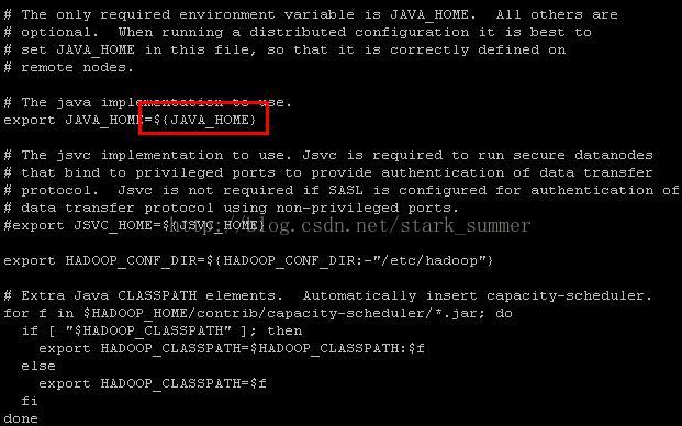 第一步修改配置文件hadoop-env.sh,加入"JAVA-HOME",如下所示: