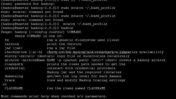 修改系统配置文件,修改~/.bash_profile文件,增加HADOPP_HOME的bin文件夹到PATH中,修改后使用source命令使配置文件生效: