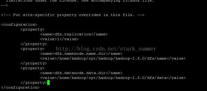 上述是hdfs-site.xml文件的最小化配置,hdfs-site.xml各项配置可参考:http://hadoop.apache.org/docs/r2.6.0/hadoop-project-dist/hadoop-hdfs/hdfs-default.xml