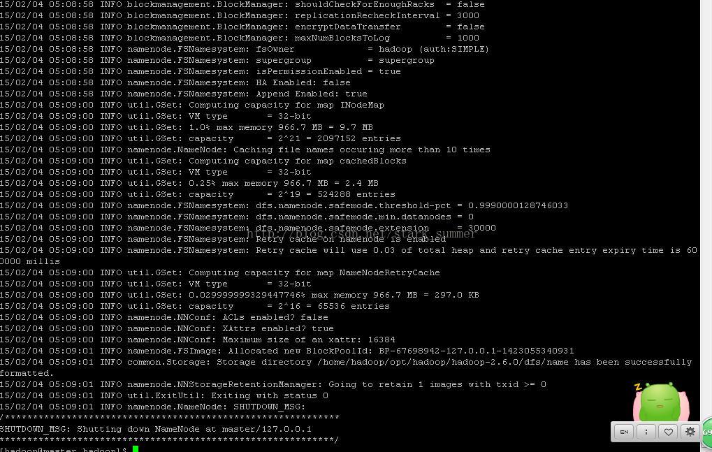 第一步:格式化hdfs文件系统: