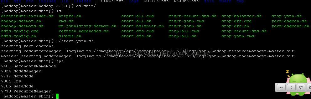此刻我们发现在master上启动了NameNode、DataNode、SecondaryNameNode