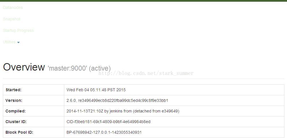 此刻通过web控制台查看hdfs,http://master:50070/
