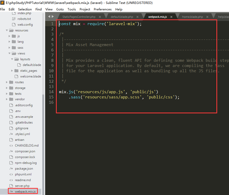 Laravel Mix 的配置文件就是项目根目录下的 webpack.mix.js: