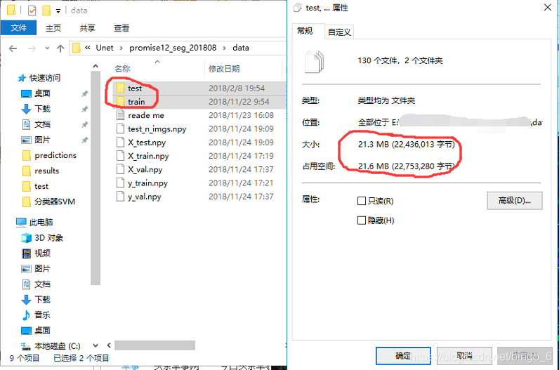 最初最原始数据为训练集文件夹50组图片和mask,测试集数据为30组图片和mask。如图总共22M