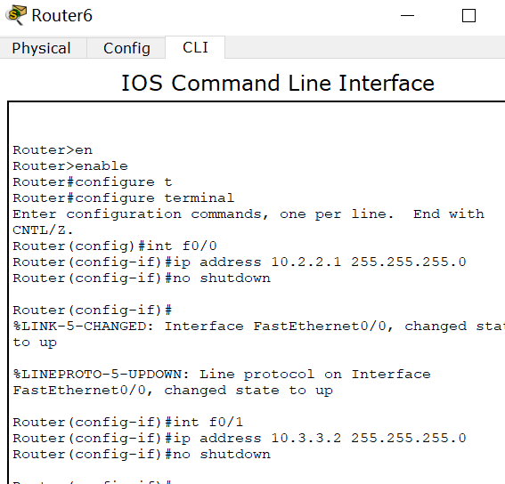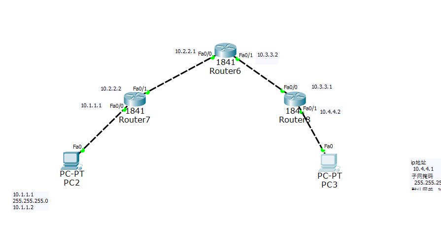 router6 f0/0:10.2.2.1 f0/1:10.3.3.2【router6 f0/1和router8 f0/0都在10.3.3.0网段】