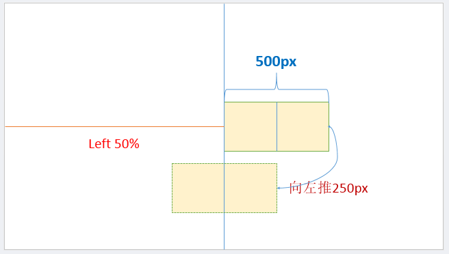 /*设置子元素的外边距为负的子元素宽度的一半,本题子元素宽500px,则设置margin-left的值为-250px。参考下图*/