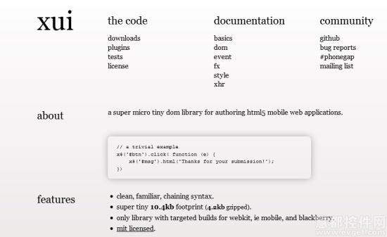 M Project也是一款久负盛名的移动JavaScript框架。通过它可编写 HTML5/CSS3/SVG 应用,并支持多数数据平台,包括 iOS, Android, Palm webOS, 和 Blackberry OS。