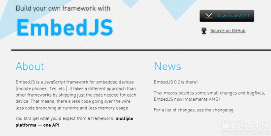 Embed.JS 是一个用于嵌入式设备的JavaScript框架,开发者可用来开发针对多设备的移动应用,比如平板、TV或者智能手机等。它可以通过最少量的代码帮你开发令人钦佩的移动app。EmbedJS Build tool还可以帮你实现某些定制功能。