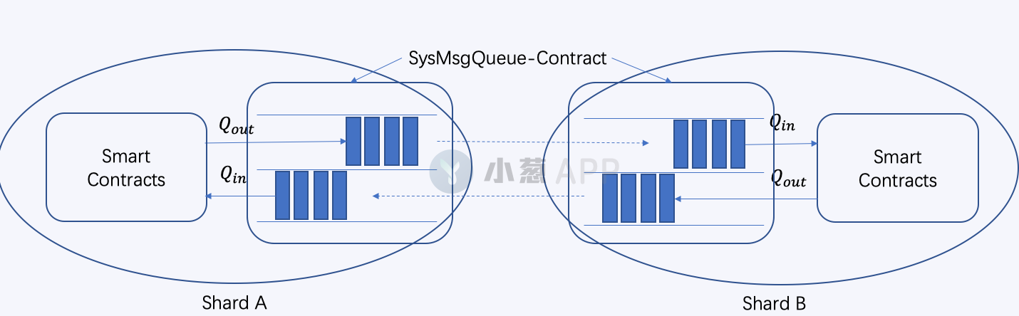 应用智能合约通过调用这一跨片消息队列合约发送跨片消息,实现跨片事务的消息传递。