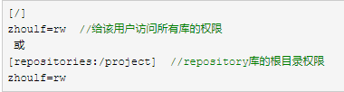 为zhoulf用户分配版本库rw权限 也可以这样写[\] zhoulf=rw 权限更大
