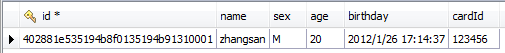<?xml version="1.0" encoding="utf-8"?> <!DOCTYPE hibernate-mapping PUBLIC "-//Hibernate/Hibernate Mapping DTD 3.0//EN" "http://hibernate.sourceforge.net/hibernate-mapping-3.0.dtd"> <hibernate-mapping> <class name="com.suxiaolei.hibernate.pojos.People" table="people" optimistic-lock="all"> <id name="id" type="string"> <column name="id"></column> <generator class="uuid"></generator> </id> <property name="name" column="name" type="string"></property> </class> </hibernate-mapping>