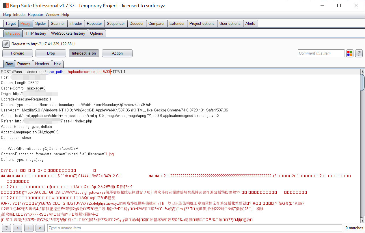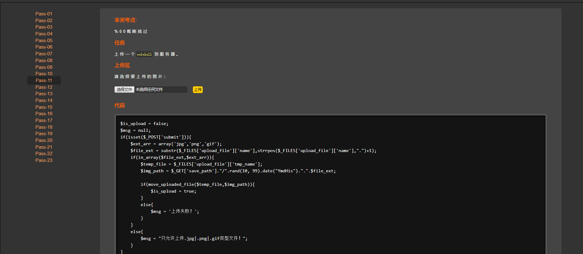 %00实际上就是十六进制的0x00,就是表示ASCII码值为0,有些函数在处理这个字符的时候会把这个当做结束符。在上传文件的时候如果遇到了白名单机制,只允许上传jpg格式。这时候可以使用%00截断。