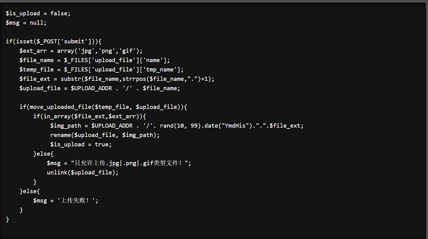 思路就是上传一个1.php%00.jpg传参之后,有些过滤都是直接匹配字符串,然后允许上传,但是php的函数去执行的时候读取到0x00认为这是结束符。抓住一点图片存储路径可控