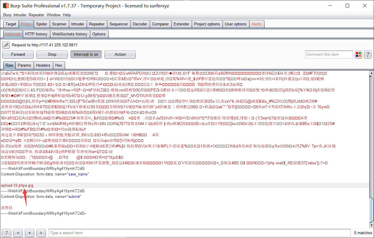 就是我们不断发送上传包,然后我们不断地访问那个我们上传去的文件地址,我们就是和服务器删除的函数比手速,我们可以上传一个php然后访问后,有这个php去写一个一句话木马。手速不够快使用burp爆破