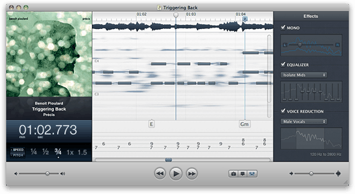 Capo has some impressive technology. The standout feature is that its main view is not a frequency spectrogram like most other audio programs. It presents the audio like a piano roll, with the notes visible to the naked eye.