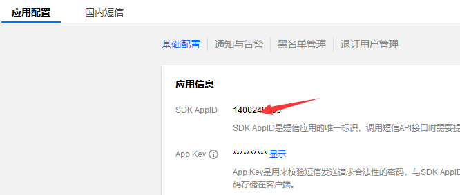 创建应用之后如下:https://console.cloud.tencent.com/sms/smsinfo/1400248333/0