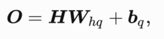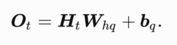 ,h为隐藏单元数。上式相加的两项形状不同,因此将按照⼴播机制相加。把隐藏变量H作为输出层的输入,且设输出个数为q(如分类问题中的类别数),输出层的输出为: