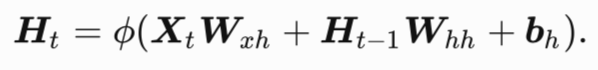 ,该参数⽤来描述在当前时间步如何使用上一时间步的隐藏变量。具体来说,时间步t的隐藏变量的计算由当前时间步的输⼊和上一时间步的隐藏变量共同决定: