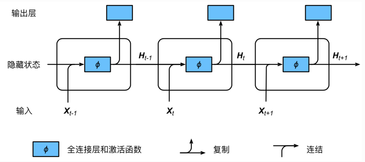 的全连接层。该全连接层的输出就是当前时间步的隐藏状态