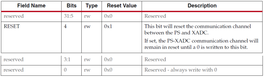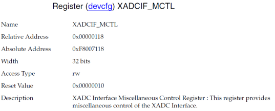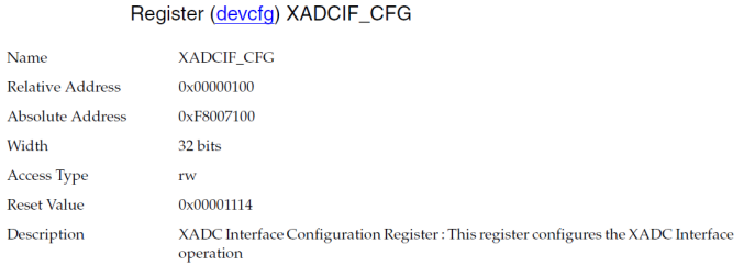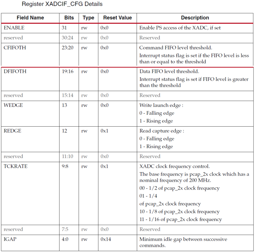接下来首先读取XADCIF_CFG的值, XADCIF_CFG的寄存器描述如下。