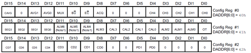 以上代码只涉及到了reg 0x41,如下表所示,可以看到关于报警、校准、通道模式,的设置都是这个寄存器控制的。