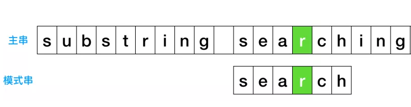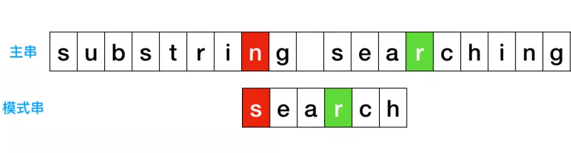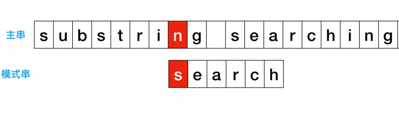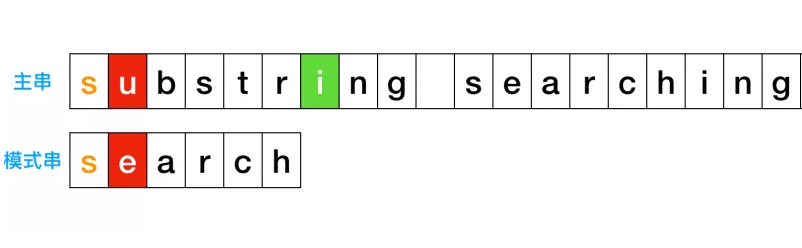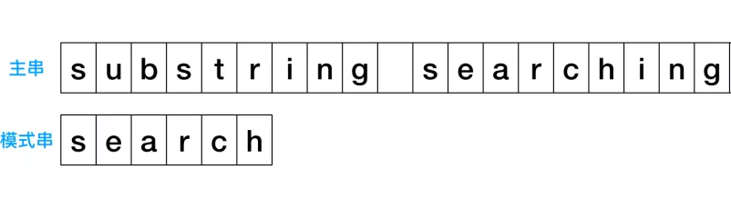 假定现在要在主串substring searching xiaowu 中查找模式串 search 。