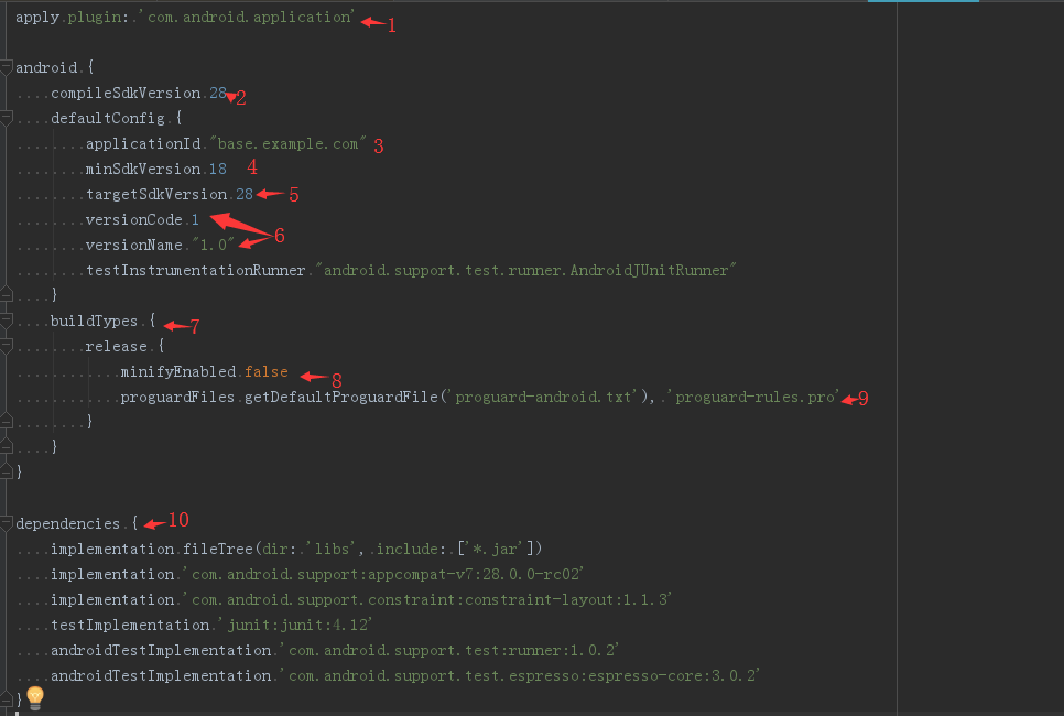 buildTypes闭包中用于指定代码混淆的相关配置,主要包含两个子闭包,分别为debug和release。debug用于生成测试版的时候,所需要用到的代码混淆。release则是定义生成正式版的时候所需要的代码混淆。