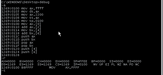 现在我们只要知道这一点就可以了:Debug的T命令在执行修改寄存器SS的指令时,下一条指令也紧接着被执行