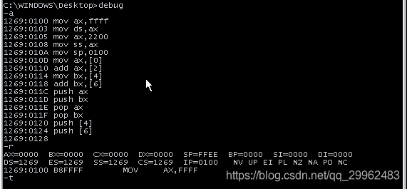 -使用Debug,将上面的程序段写入内存,逐条执行,根据指令执行后的实际运行情况填空