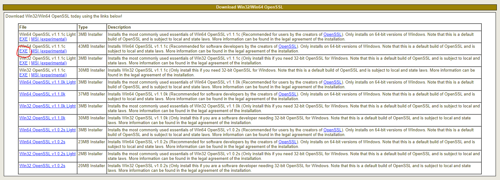 1)下载openssl: http://slproweb.com/products/Win32OpenSSL.html