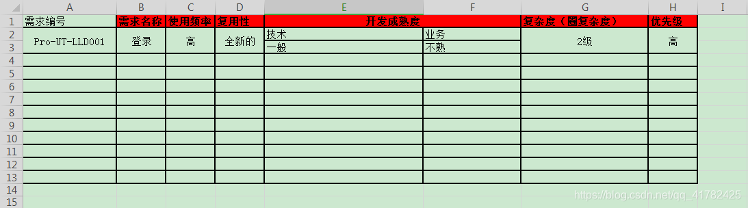- 优先级高的那么也就是那20%的代码,当对项目某个模块进行单元测试时,则需要进行制测试范围表进行如下分析