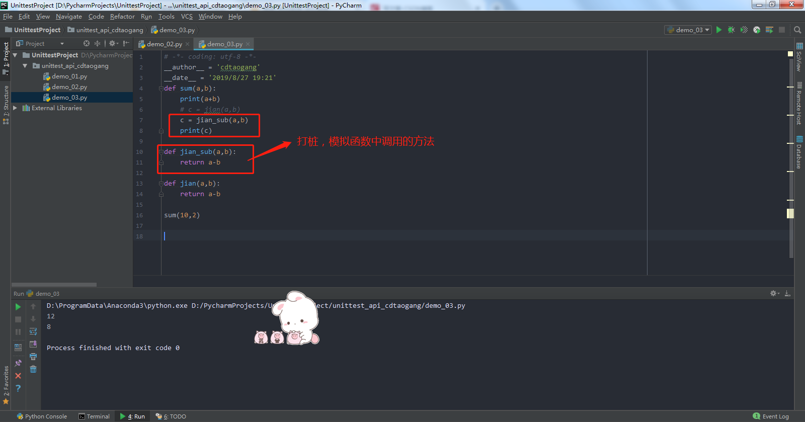 - 示例:在代码中实现了两个数字之间的加法和减法运算,在加法方法中调用了减法函数,但测试时候只想测试加法