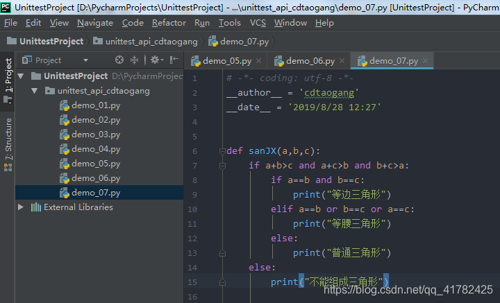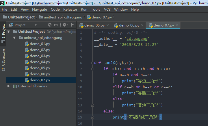 案例:三角形判断,判断是否是等边三角形丶等腰三角形和普通三角形,否则提示不能组成三角形