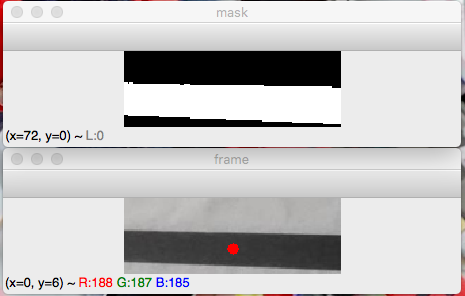 cv2.circle(frame, (Postion_x, Postion_y), 4, (0, 0, 255), -1) #画出交点