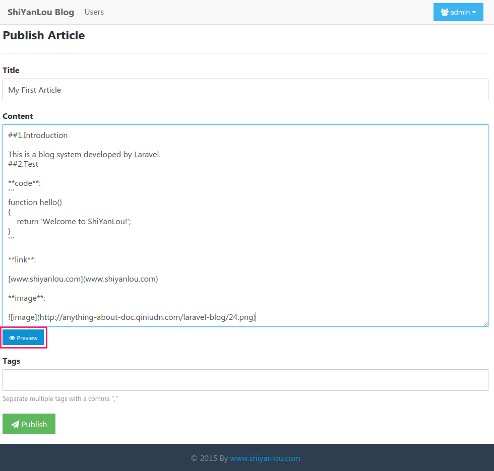 Laravel大型项目系列教程(三)之发表文章