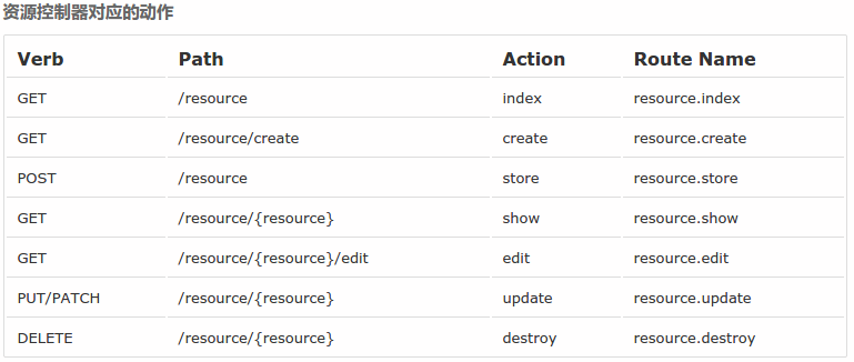 Route::resource('article', 'ArticleController');