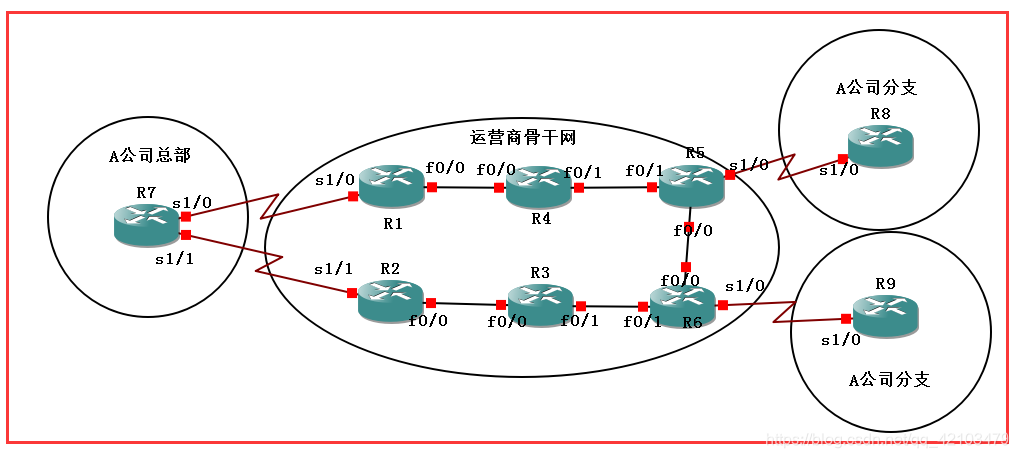 4.5将A公司总部路由分发到两个PE路由器R1、R2上