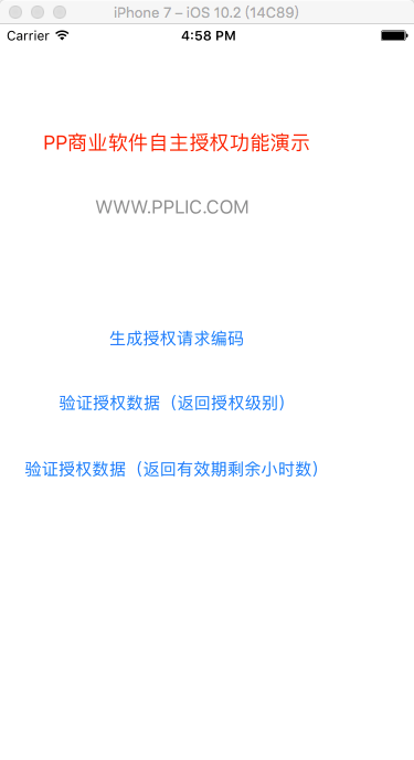 PP商业软件授权平台可以帮助IOS软件工程师实现这样的功能:比如为A、B、C三位客户提供相同的一份IOS静态库供他们的APP程序调用,A、B、C三客户获得的是不同类型和级别的批量授权码,A客户能在50台IOS终端上调用静态库的所有函数,但只能试用3天,3天后静态库会拒绝调用,B客户可在2000台IOS终端上调用静态库的部分函数,1年有效期,C客户可无终端数量限制、无时间限制地调用静态库的所有函数。IOS静态库无需联网。这些功能软件工程师花2个小时接入终端开发包的2个函数就可以,而且是全免费的!