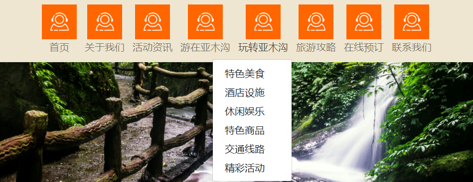 navList只放了两个对象,只做例子示范,用jquery修改了一些样式。第一个对象首页是没有下拉列表的。我把首页的下拉列表禁止显示了。
