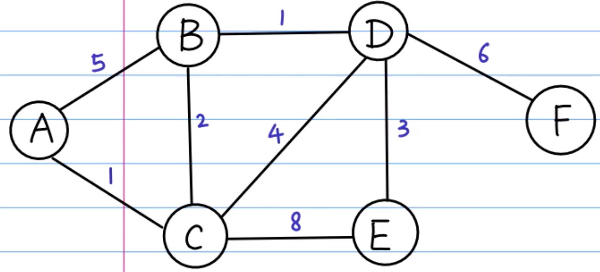 'D': {'B': 1, 'C': 4, 'E': 3, 'F': 6},