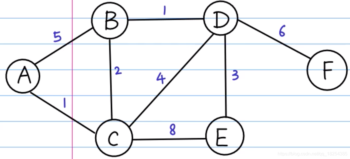 图如图所示,假设起点为A,找出起点到剩下各个点的最短路径。